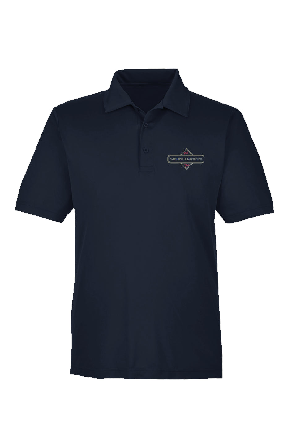 Yeah, it’s a golf shirt. Relax. Lightweight. Breathable. Doesn’t cling to you like desperation. It’s got Canned Laughter on the chest so people know you’re fun without you having to prove it. Wear it on the course, at work, or to a family event where nobody gets your jokes.